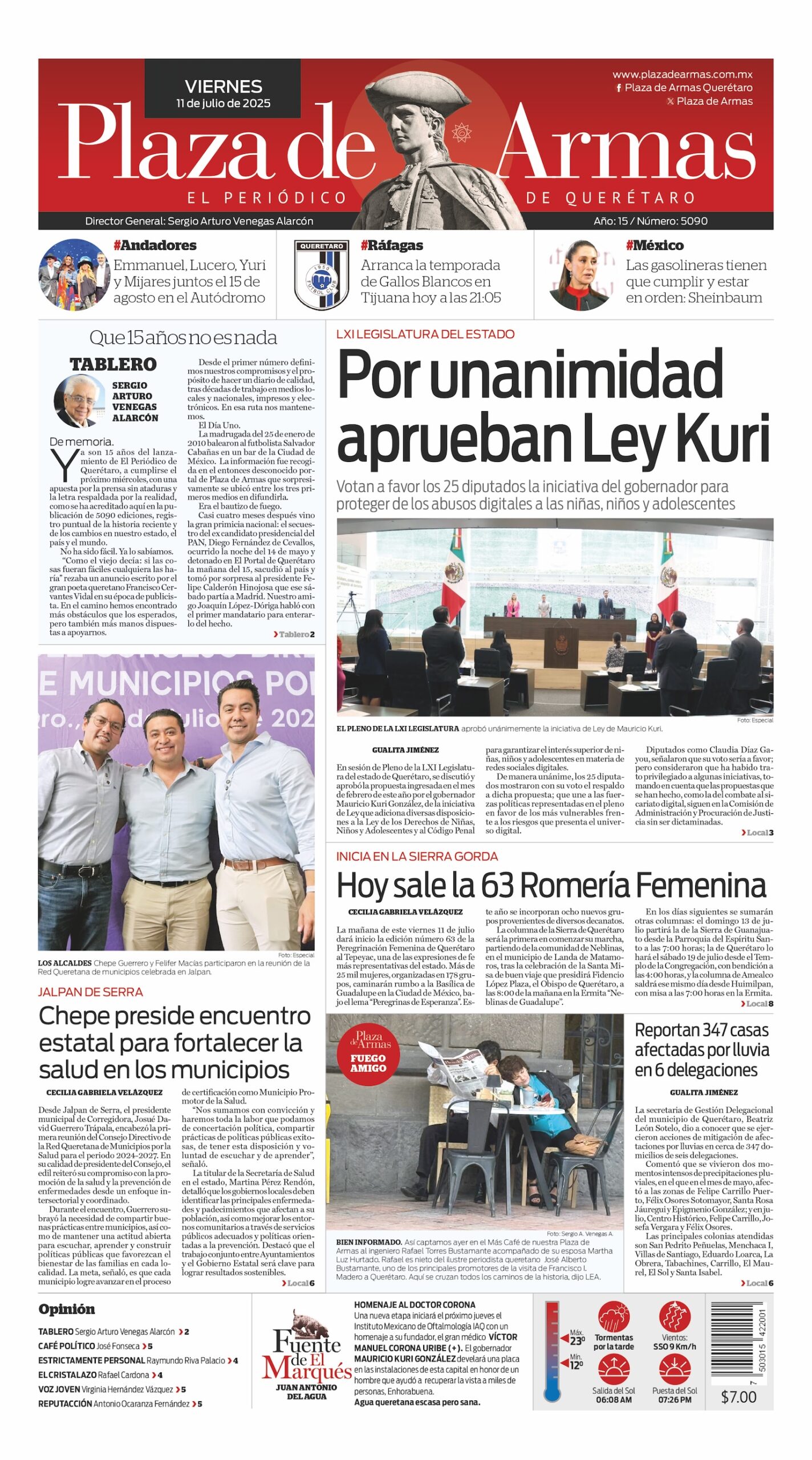 11 En sesión de Pleno de la LXI Legislatura del estado de Querétaro, se discutió y aprobó la propuesta ingresada en el mes de febrero de este año por el gobernador Mauricio Kuri González, de la iniciativa de Ley que adiciona diversas disposiciones a la Ley de los Derechos de Niñas, Niños y Adolescentes y al Código Penal para garantizar el interés superior de niñas, niños y adolescentes en materia de redes sociales digitales.