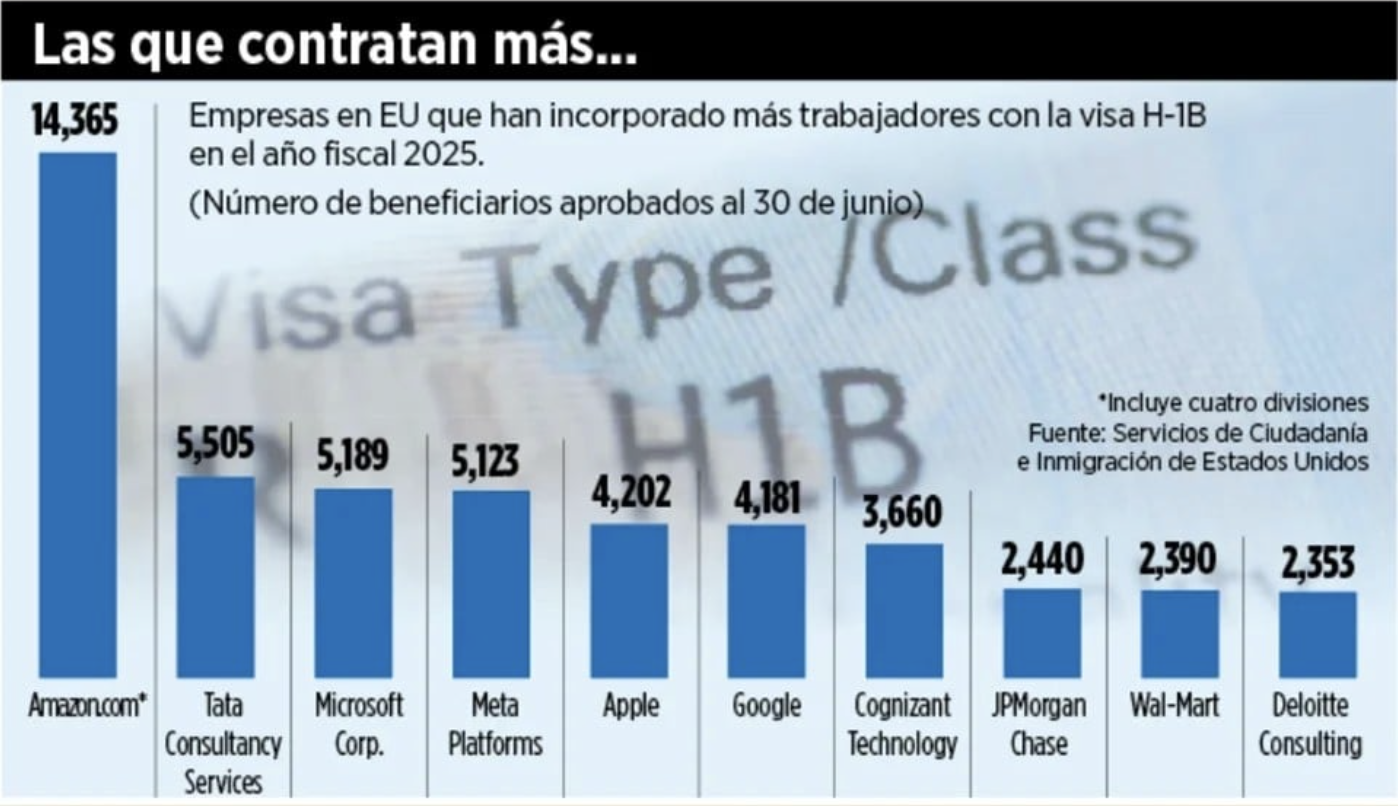 Los flujos de trabajadores altamente calificados que se instalan cada año en EU con la visa H-1B podrían ser redirigidos a otros países, como México, por lo caro del trámite.