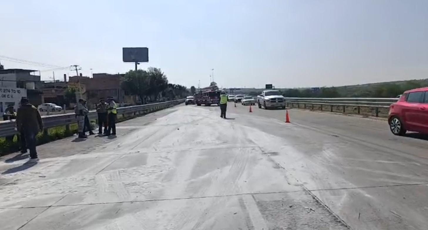 En el lugar se contó con la presencia de elementos de la Guardia Nacional, así como de Bomberos de San Juan del Río y personal de Protección Civil, quienes atendieron la emergencia y realizaron labores para mitigar riesgos, además de coordinar la limpieza del material derramado.