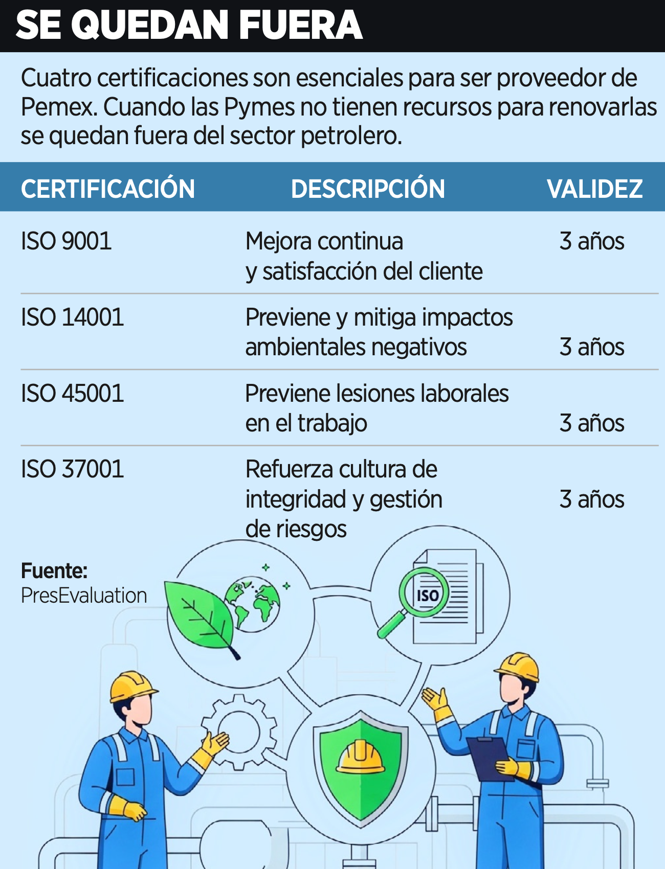 Estas certificaciones son exigidas por la paraestatal.