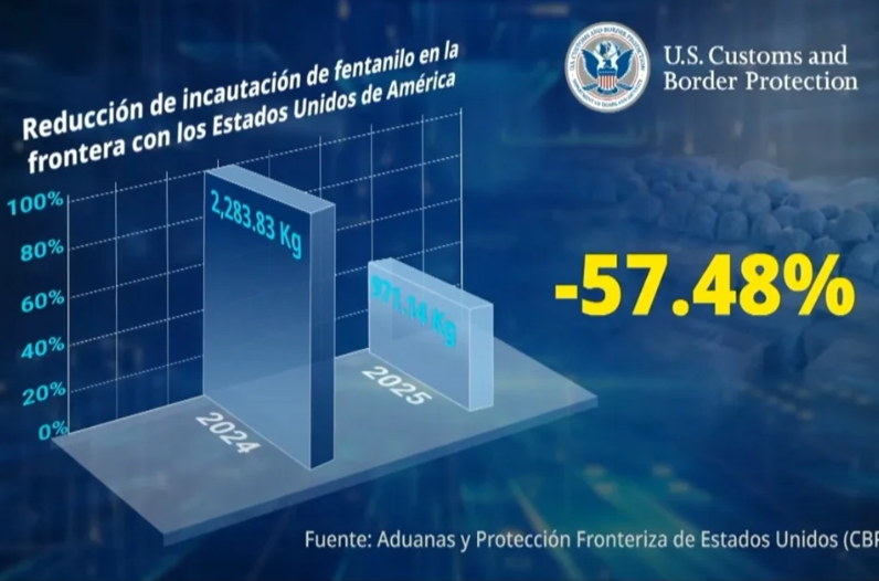 El Gobierno federal informó que por los esfuerzos de instituciones mexicanas, se han reducido en 57.48% las incautaciones de fentanilo por parte de la Oficina de Aduanas y Protección Fronteriza de Estados Unidos.