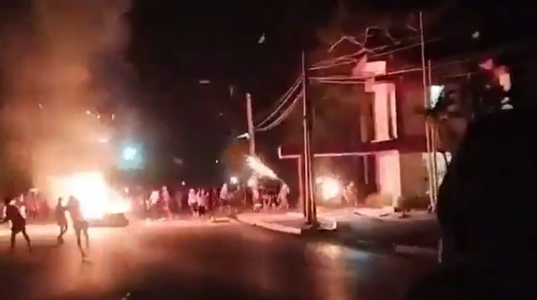 Según el Ministerio del Interior, los disturbios comenzaron alrededor de la medianoche, después de que la protesta se desplazara hacia la comisaría de policía local. Allí, el ambiente se tensó luego de un intercambio de palabras con funcionarios del gobierno. La manifestación luego avanzó hacia la sede municipal del Partido Comunista de Cuba (PCC), donde, según la versión oficial y algunos testimonios recogidos por medios independientes, un pequeño grupo de manifestantes arrojó piedras y prendió fuego a mobiliario sacado del edificio, lo que provocó un incendio en la vía pública.
