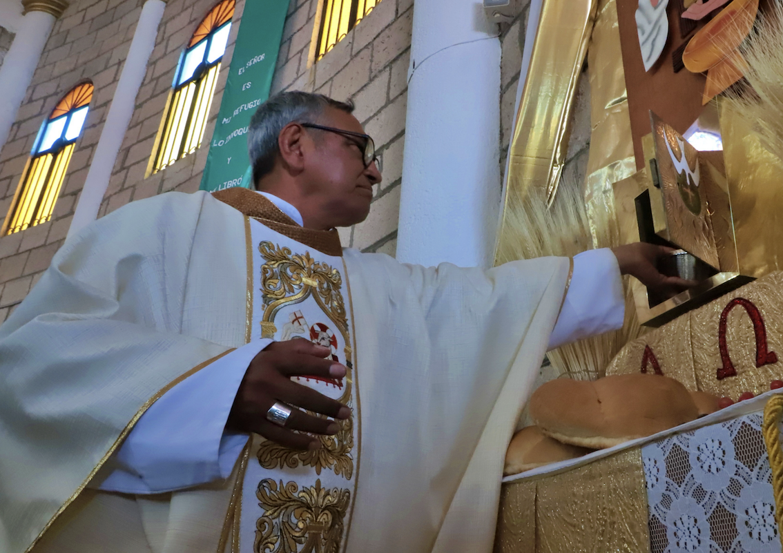 Fidencio López Plaza pidió que Dios bendiga a las y los creyentes por su generosidad. Foto: Fernando Trejo