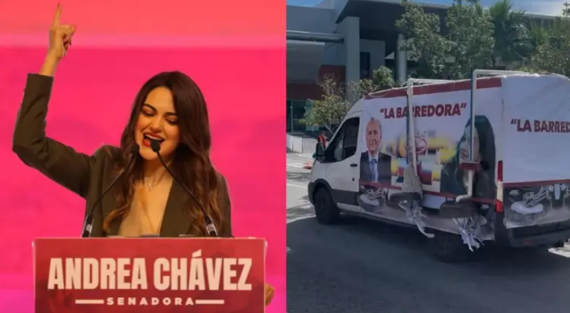 Sobre los vehículos con imágenes de ella y Adán Augusto López, con la leyenda de “La Barredora”, Andrea Chávez no expresó algo al respecto.