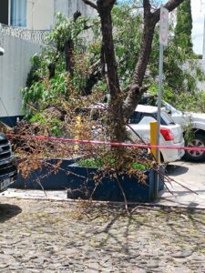 Los fuertes vientos de hoy derribaron un árbol que cayó sobre dos vehículos en el Boulevard Bernardo Quintana frente al banco Inbursa de Álamos. Por fortuna no hubo personas lesionadas y todo quedó en daños materiales.