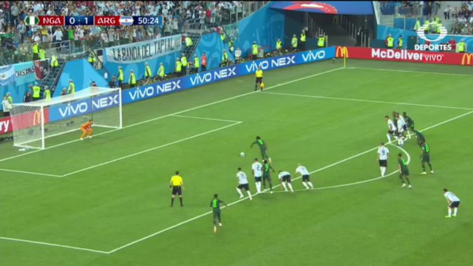 Al minuto 14 del encuentro, el astro del equipo argentino, Lionel Messi, por fin se hizo presente en el marcador. Éver Banega filtró un gran balón para el 10, quien de pierna derecha cruzó su remate para vencer al guardameta nigeriano.