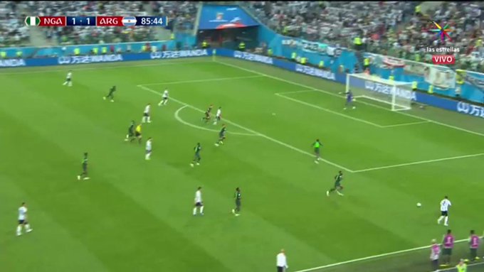 Ya en el complemento, Mascherano cometió un penal en el área argentina sobre Balogun. Moses fue el encargado de cobrar la pena máxima y con un toque suave empatar el partido a los 51 minutos.
