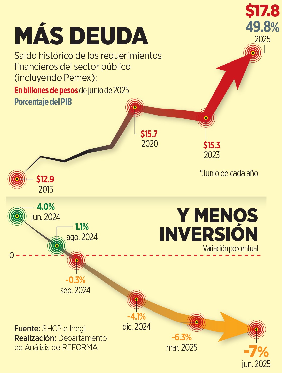 En el marco del foro Inside LatAm: México 2025, Renzo Merino refirió que dicha deuda subió alrededor de 5 puntos porcentuales solamente el año pasado y advirtió que la carga sería muy cara de mantener.
