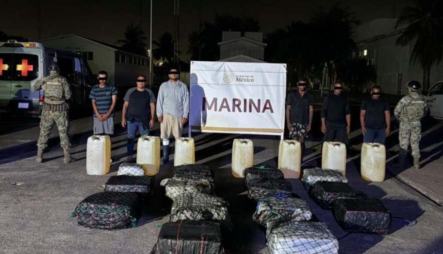 La Secretaría de Marina aseguró 650 kilos de presunta cocaína y detuvo a seis personas en una operación marítima al suroeste del puerto de Lázaro Cárdenas, Michoacán.