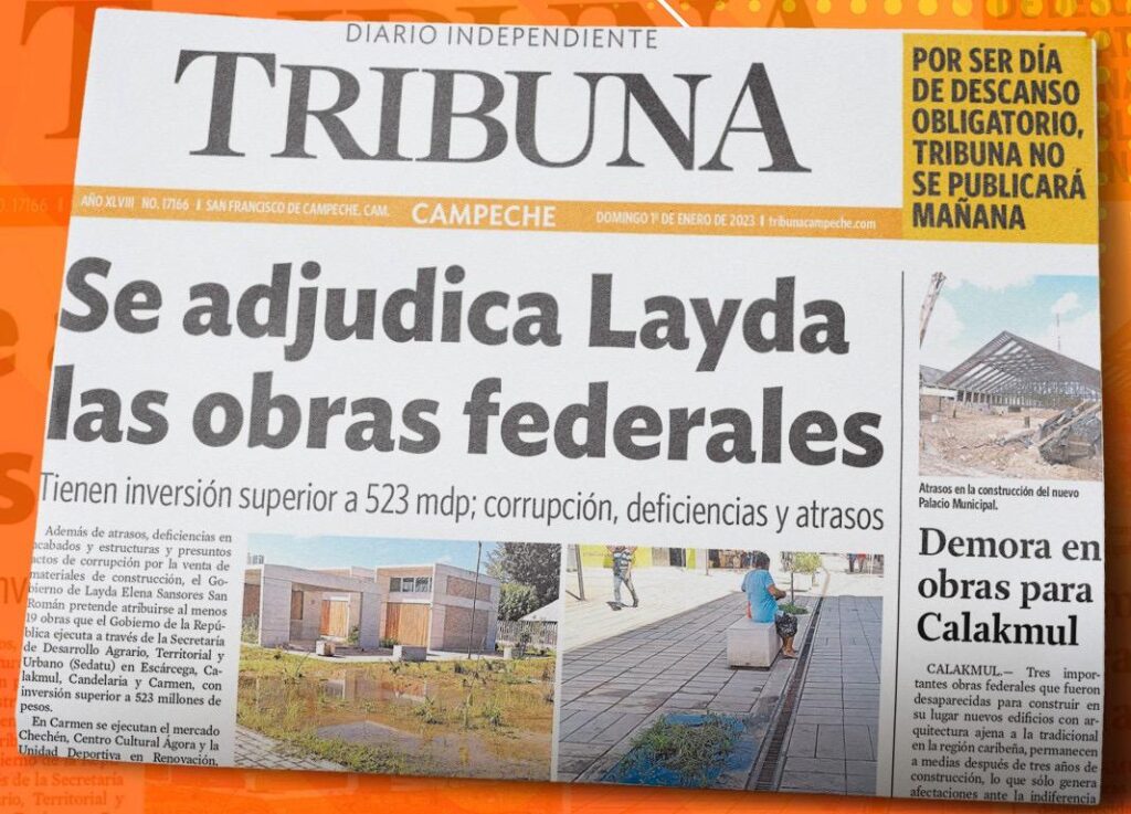 EL GOBIERNO DE LA MORENISTA LAYDA SANSORES ha intervenido al periódico Tribuna de Campeche. Una juez ordenó que el medio someta a su revisión todas las notas en donde se le mencione, en un claro atentado a la libertad de expresión. Protestamos lo necesario y más.