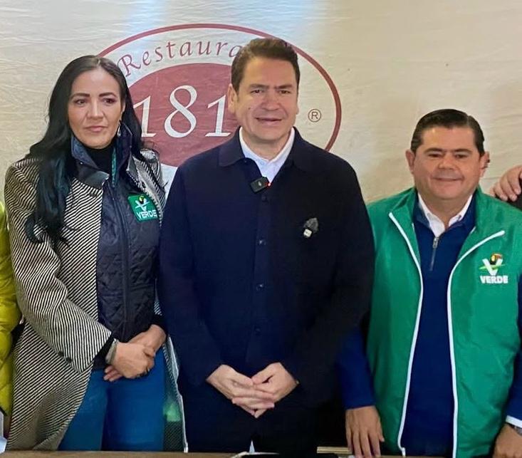 RICARDO ASTUDILLO, líder del Verde, diputado federal y aspirante a la gubernatura, acompañado de Paloma Arce y Antonio Ortega Cerbón.