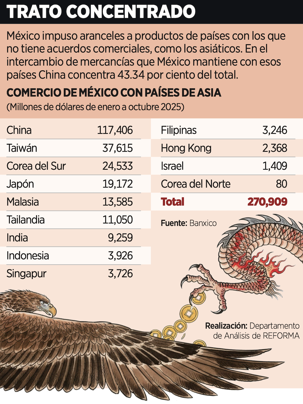 Por su parte, la Cámara Nacional de la Industria del Hierro y del Acero (Canacero) celebró la aprobación de aranceles a la importación de productos de distintos sectores, incluidos los siderúrgicos, provenientes de países con los que México no tiene un acuerdo comercial.