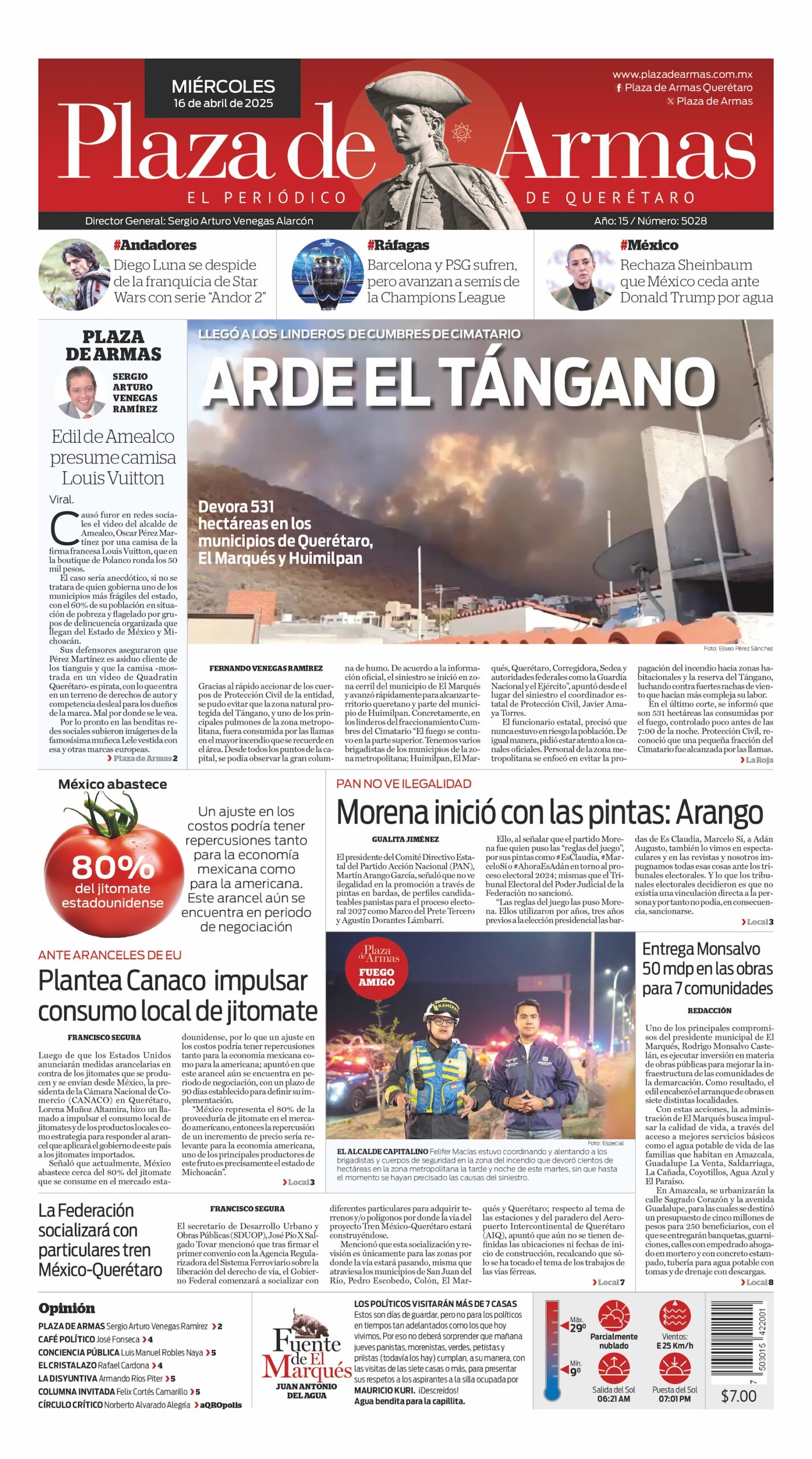 23 Se publicaron los resultados de la Encuesta Nacional de Seguridad Pública Urbana (ENSU) del INEGI, correspondiente a marzo de 2025, en la que Querétaro capital subió del lugar 57 al 13 en percepción de seguridad de enero a marzo.