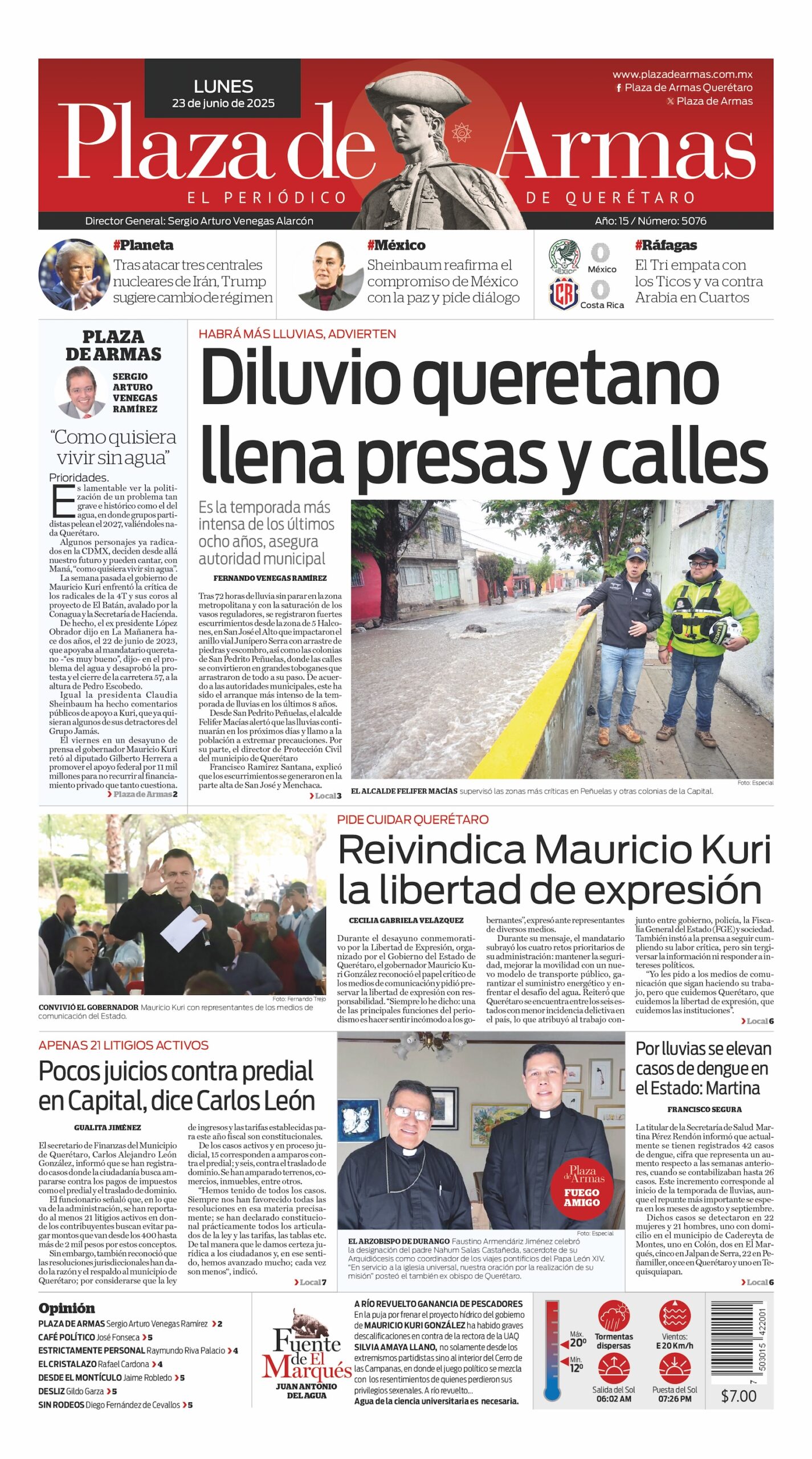 23 Durante el desayuno conmemorativo por la Libertad de Expresión, organizado por el Gobierno del Estado de Querétaro, el gobernador Mauricio Kuri González reconoció el papel crítico de los medios de comunicación y pidió preservar la libertad de expresión con responsabilidad. “Siempre lo he dicho: una de las principales funciones del periodismo es hacer sentir incómodo a los gobernantes”, expresó ante representantes de diversos medios.