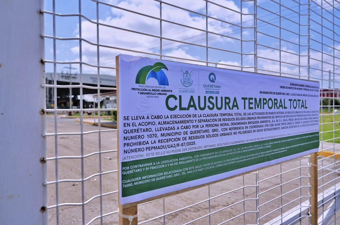 El secretario de Servicios Públicos del Municipio de Querétaro, Armando Presa Ortega, indicó que la empresa Broquers Ambiental ya ha recibido el levantamiento temporal de la clausura de la Planta de Tratamiento y Separación de Basura, a partir del 8 de diciembre.