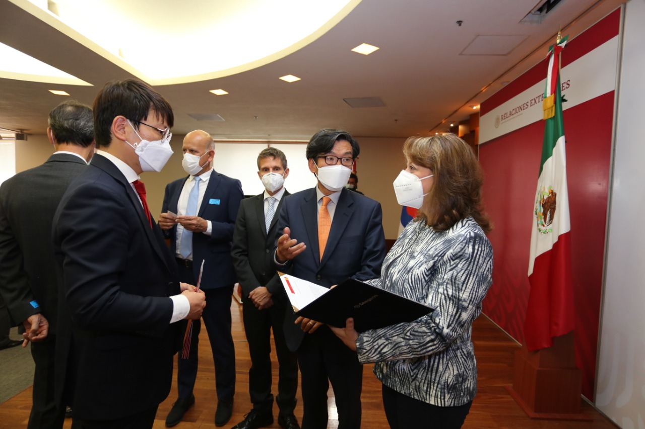 Por su parte, el Embajador Suh Jeong-In manifestó su reconocimiento al gobierno mexicano y concretamente a la Secretaría de Relaciones Exteriores por el control de la epidemia a través de una labor incesante por conseguir la vacunación para las y los mexicanos, a través de una estrategia unidireccional y multilateral en coordinación con la Organización de las Naciones Unidas.