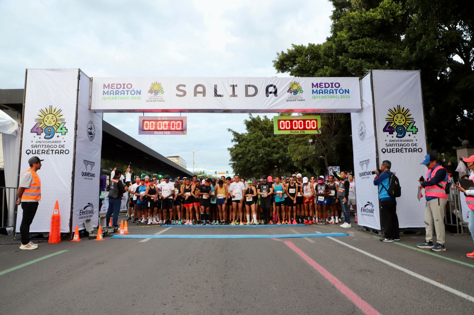 Alrededor de 4 mil corredores participaron este domingo 27 de julio en el Medio Maratón Querétaro 2025, celebrado por primera vez en el marco del aniversario de la ciudad.
