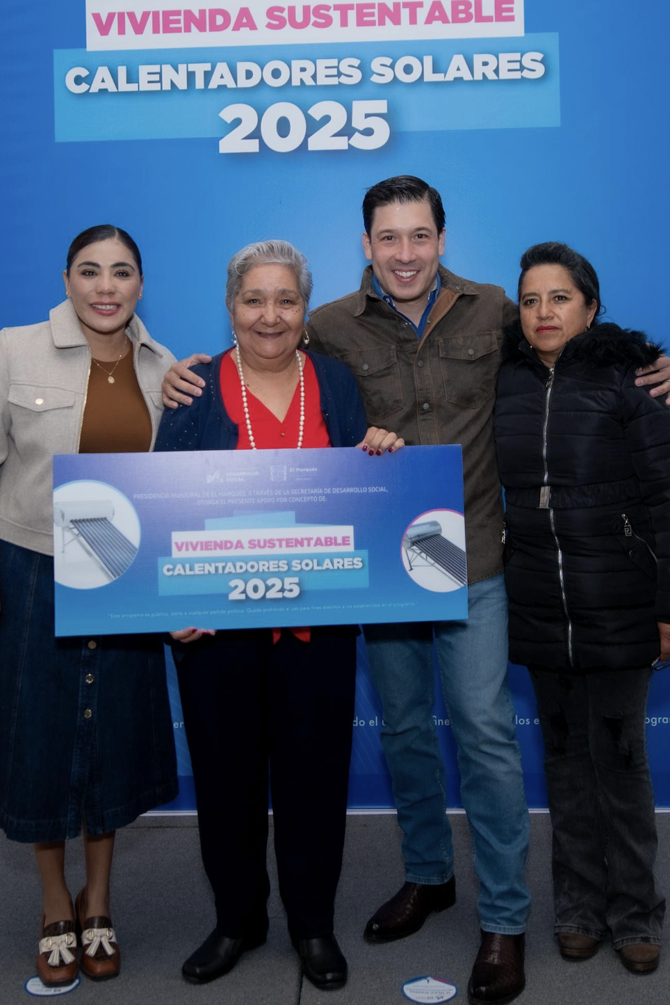 El presidente municipal de El Marqués, Rodrigo Monsalvo Castelán, encabezó la entrega simbólica de 480 calentadores solares como parte del programa “Vivienda Sustentable 2025”, con el propósito de mejorar la calidad de vida de las familias y fomentar el uso de energías limpias en los hogares del municipio.