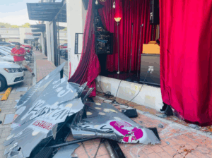 Un Vehículo se estrelló contra Karaoke Bar ubicado en Av. Corregidora Norte casi esquina con Privada la Laborcilla, en inmediaciones de Hacienda Laborcilla.