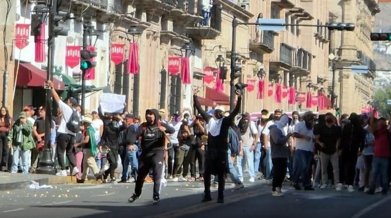 Los alumnos de la Universidad Michoacana de San Nicolás de Hidalgo arribaron cerca de las 14:00 horas frente al recinto de Gobierno, en Avenida Madero, donde encontraron un cerco formado por vallas y la puerta principal cercada por elementos de la Guardia Civil y Policía del estado.