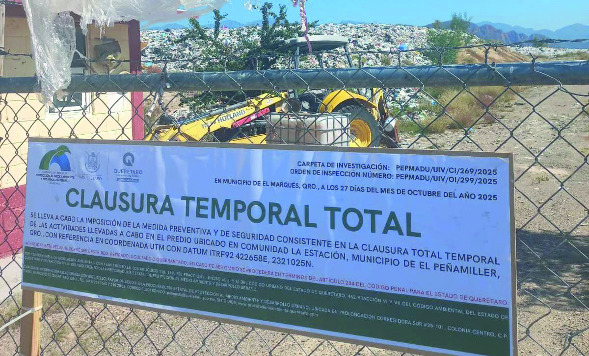En cumplimiento a la inspección y vigilancia de los rellenos sanitarios en el estado, el personal de la Procuraduría Estatal de Protección al Medio Ambiente y Desarrollo Urbano (PEPMADU) realizó un recorrido en el predio utilizado para la disposición de los residuos sólidos urbanos (RSU) del Municipio de Peñamiller, mismo que resultó en la clausura del sitio.