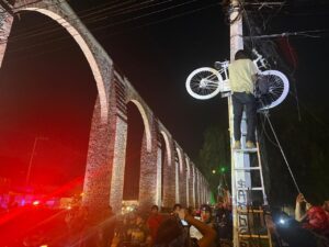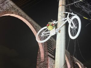Como todos los miércoles, el grupo de Saca la Bici realizó su tradicional recorrido, pero en esta ocasión hicieron una pausa para colocar la bici blanca, símbolo que representa accidentes fatales de ciclistas.