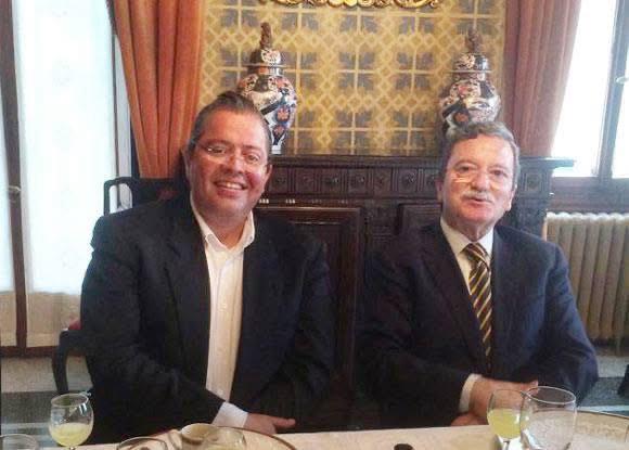 EL ARMERO Sergio Arturo Venegas Ramírez con el entonces embajador de México en El Vaticano Mariano Palacios Alcocer. El director editorial de Plaza de Armas recibirá un homenaje póstumo hoy en la Ciudad de México como Líder del Cambio 2026.