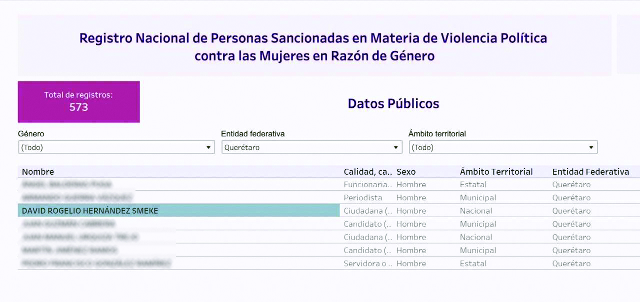 Un alto directivo de la UAQ confirmó no haber invitado al acto del lunes con la rectora Silvia Amaya al sedicente comunicador David Smeke, inscrito en el padrón nacional de Personas Sancionadas en Materia de Violencia Política contra las mujeres en Razón de Género del INE. La denuncia fue presentada por la excandidata a diputada federal Carolina Iñiguez, de Movimiento Ciudadano.