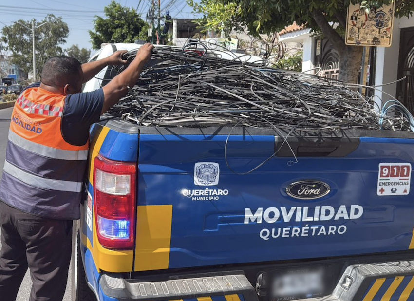 Por instrucciones del alcalde, Felifer Macías, durante 2026 continúa el retiro de cableado en desuso de la vía pública, como parte de las acciones para mejorar la seguridad vial, la movilidad y la imagen urbana del municipio de Querétaro.