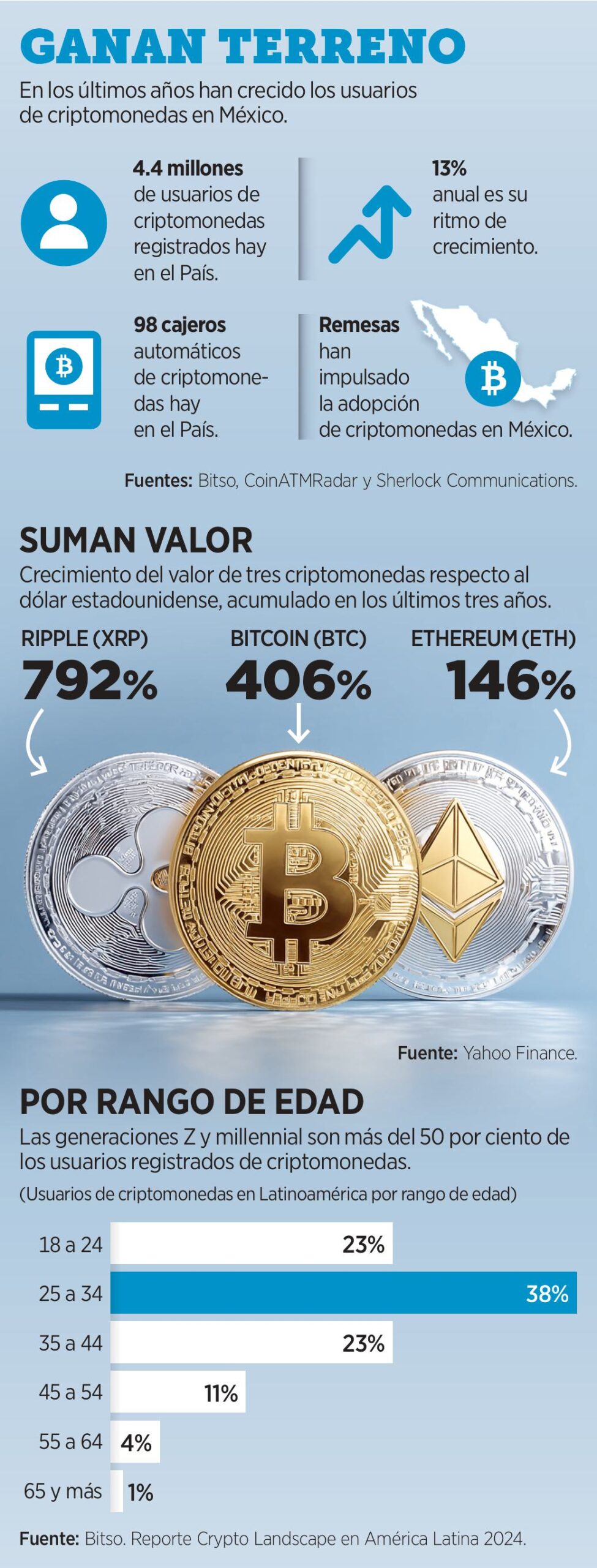Actualmente, al menos 4.4 millones de personas en el país son usuarios registrados de criptomonedas, con un ritmo de incremento anual de 13 por ciento, de acuerdo con el Reporte Crypto Landscape en América Latina 2024, elaborado por Bitso, plataforma de intercambio de criptoactivos.