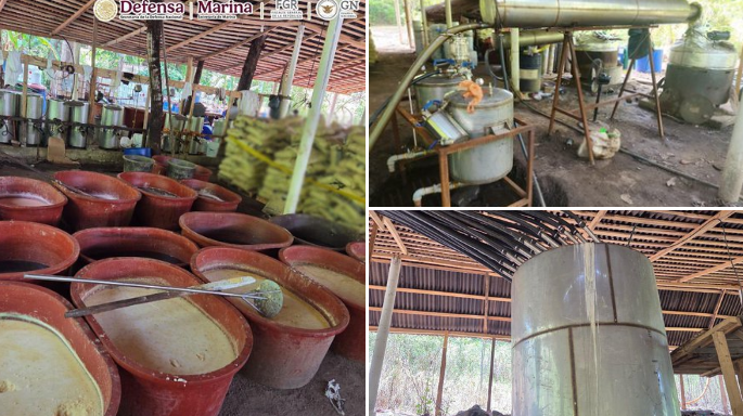 En Chiapas, además de lo referido, se decomisaron más de 300 tambos y contenedores con sustancias químicas para la fabricación de drogas sintéticas, así como diferentes recipientes y artefactos metálicos.