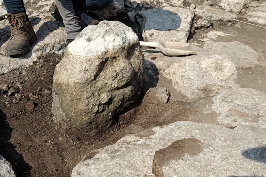 Como parte del proyecto de salvamento arqueológico ligado a las obras de construcción del libramiento ferroviario Frente 2 Mérida-Progreso, en Yucatán, como parte de la infraestructura de carga del Tren Maya, especialistas del Instituto Nacional de Antropología e Historia (INAH) hallaron lo que se identificó como un probable marcador a la entrada de un recinto de reunión, en el ejido de Sierra Papacal.