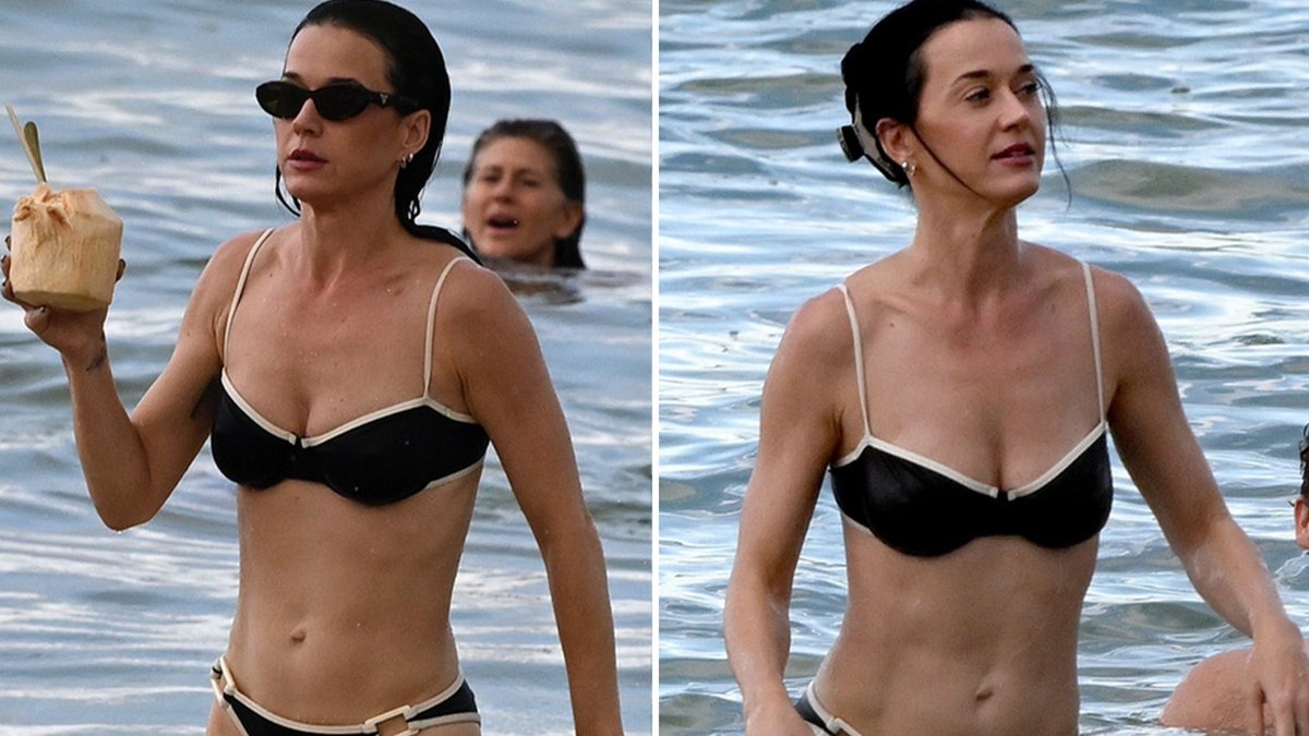 Katy Perry aprovechó un día libre en Miami para lucir su espectacular figura en un diminuto bikini negro, mientras disfrutaba de la playa con amigos.