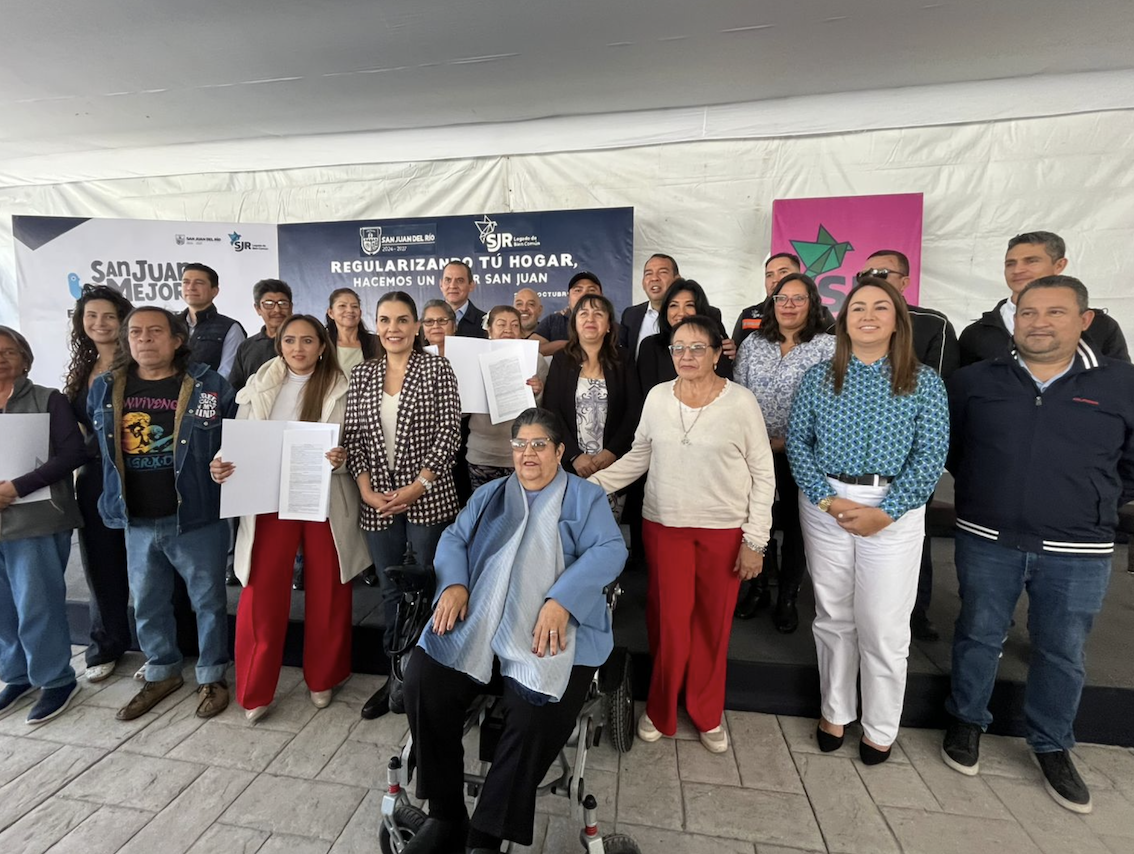 Con el objetivo de brindar certeza jurídica al patrimonio de 193 familias, el presidente municipal Roberto Cabrera Valencia encabezó la ceremonia de firma de escrituras correspondientes a cinco asentamientos humanos de la demarcación, como parte del programa “Regularizando Tu Hogar, Hacemos un Mejor San Juan”.