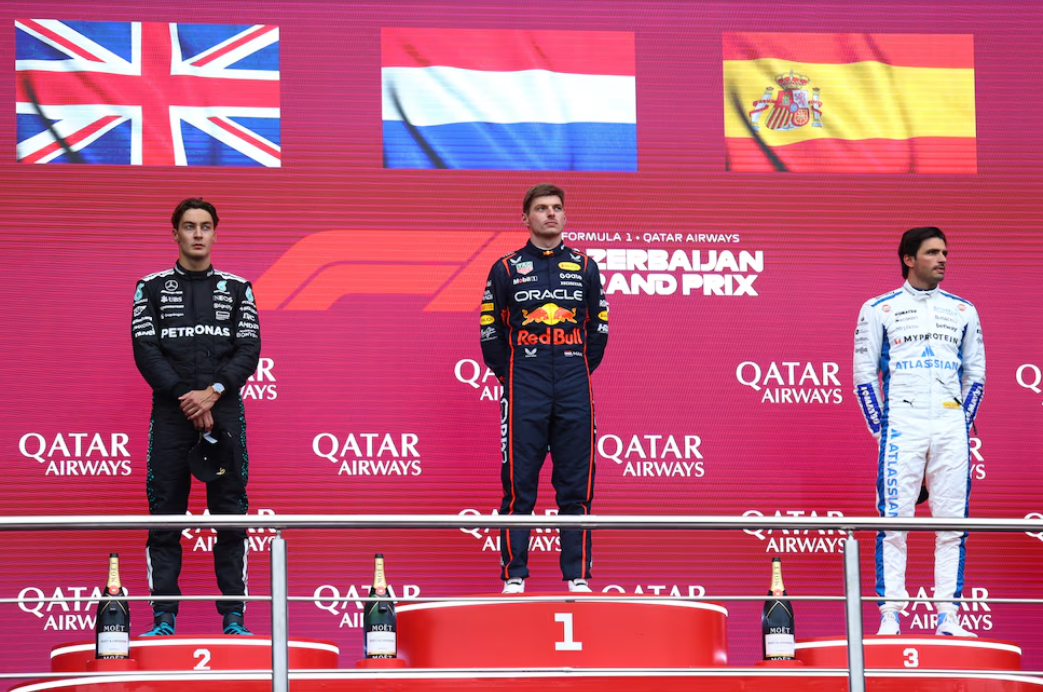 George Russell y Carlos Sainz completaron el podio en Bakú.