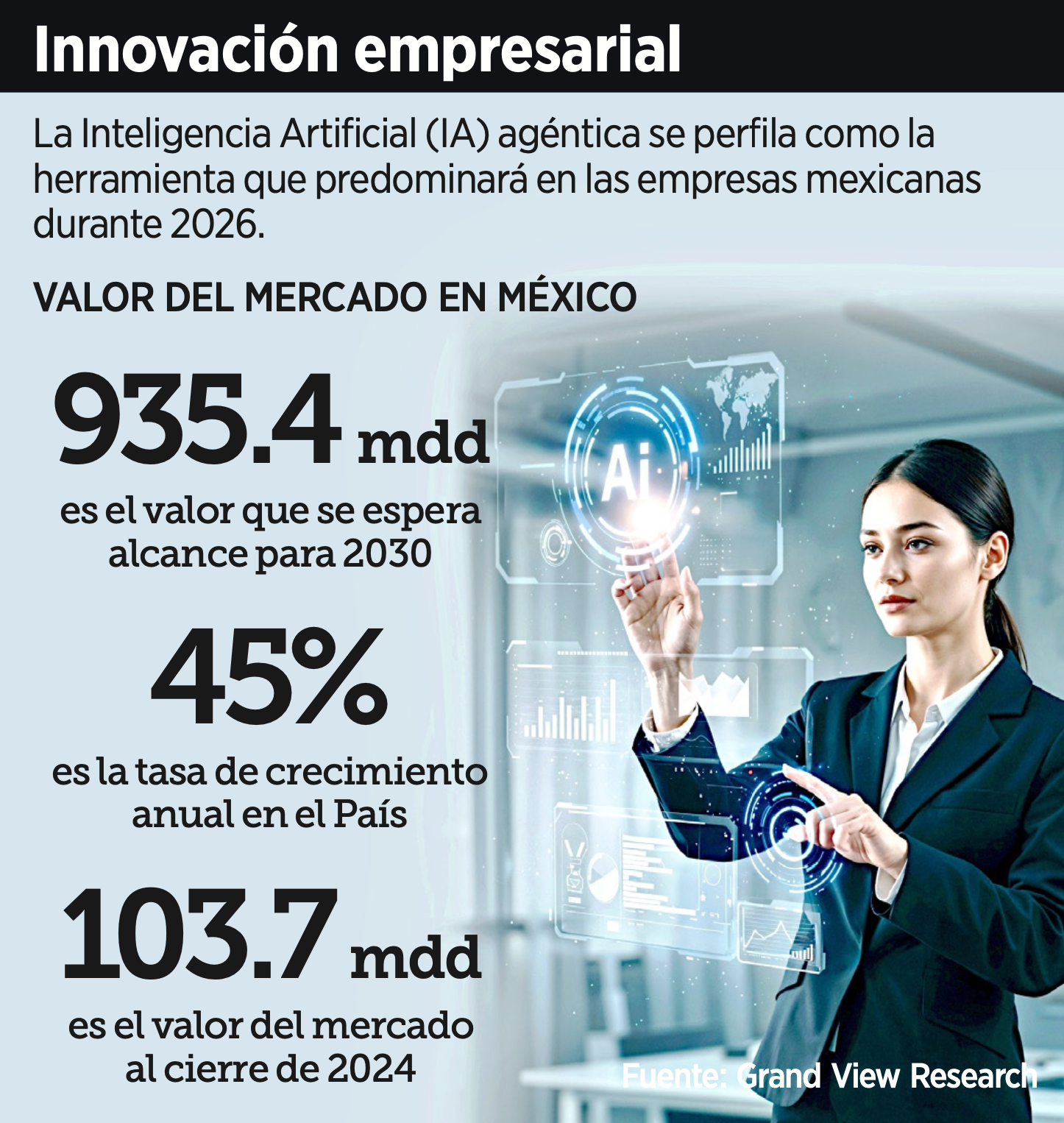El uso de la Inteligencia Artificial (IA) agéntica, es decir, herramientas especializadas en integrar procesos operativos laborales complejos, será una de las tecnologías con mayor desarrollo y demanda en 2026, aseguraron especialistas.
