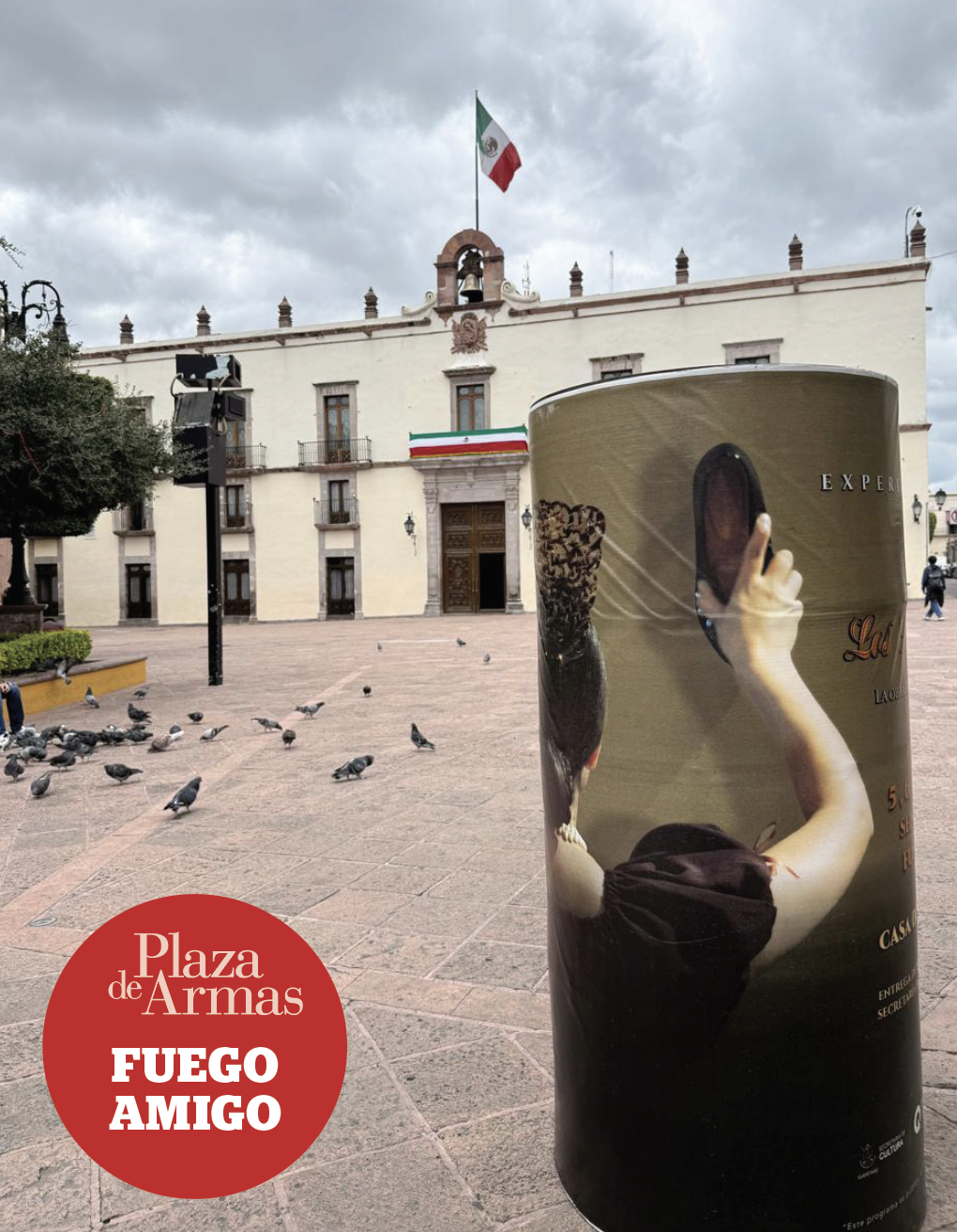 EL TACONAZO DE LA CORREGIDORA en un anuncio cilíndrico colocado en nuestra Plaza de Armas para promover la obra teatral histórica “Los Insurgentes” que tendrá sus últimas funciones los días 26 y 27 de septiembre en la Casa de la Corregidora. Los boletos se entregan en las Secretaría de Cultura y de Turismo del Estado.