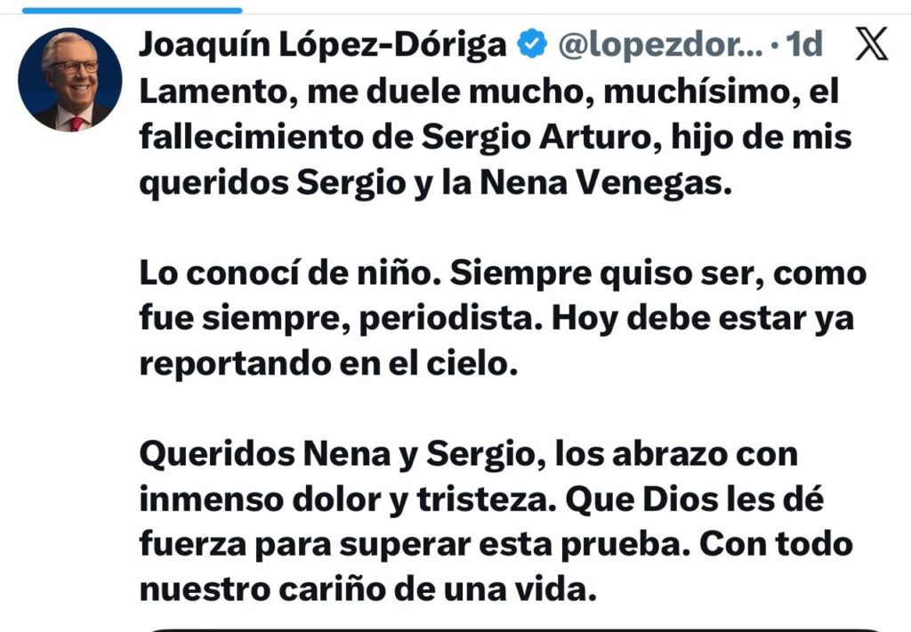 MENSAJE DE JOAQUÍN LÓPEZ-DÓRIGA para sus millones de seguidores en X, Face, Instagram y en López-Dóriga Digital.