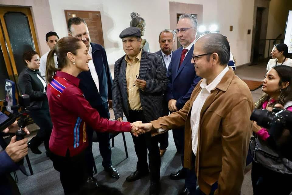 EL ARMERO Sergio Arturo Venegas Ramírez, director editorial de Plaza de Armas, saludando a la presidenta Claudia Sheinbaum junto con el gobernador Mauricio Kuri y otros compañeros comunicadores en la Casa de la Corregidora.