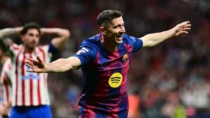 Lewandowski culmina la remontada azulgrana ante un Atlético condicionado por una expulsión y amplía la ventaja sobre el Real Madrid
