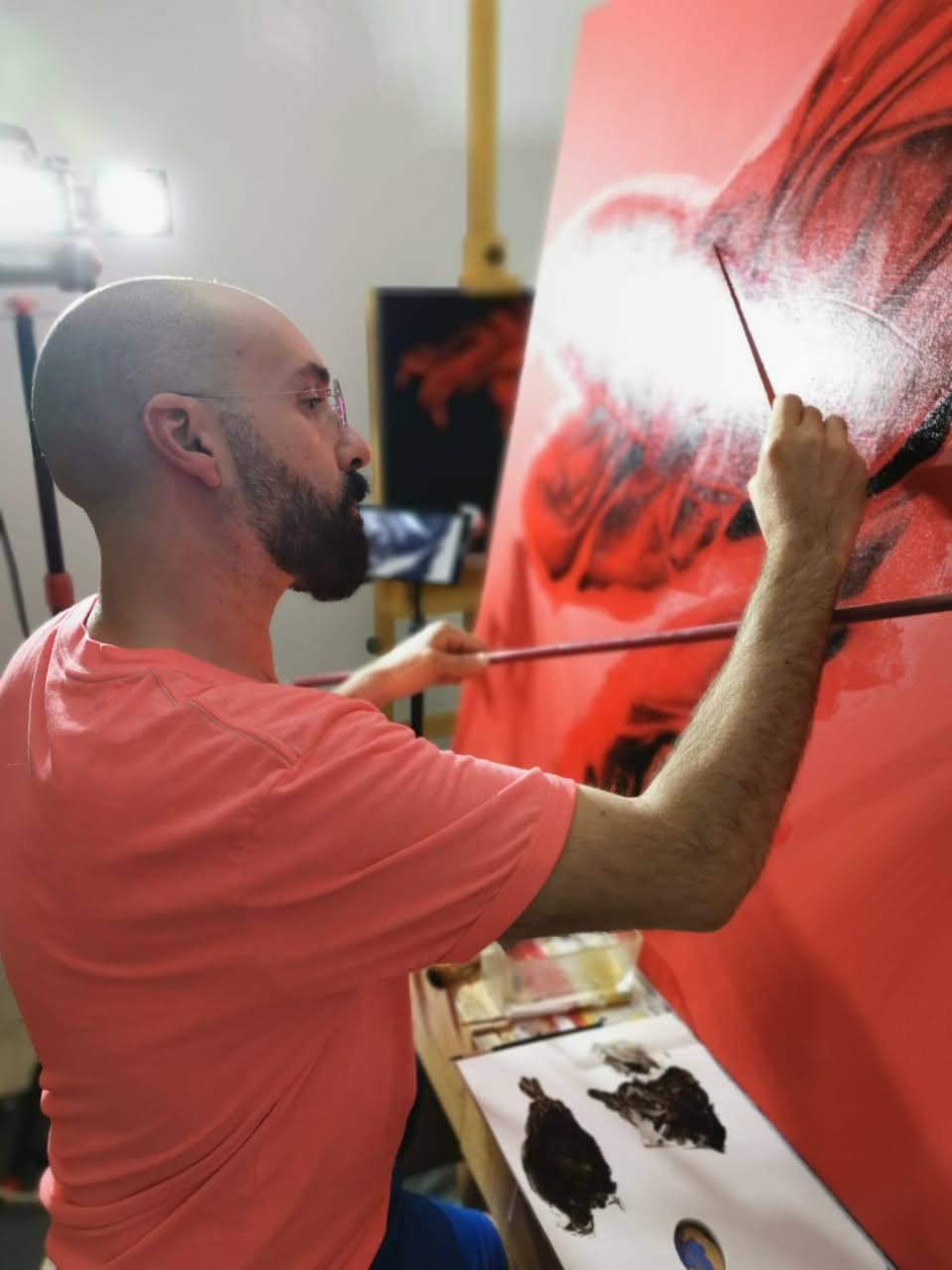 Su estudio –un refugio cálido, compartido con dos gatos que le acompañan en sus días de introspección– es testigo silencioso de sus metamorfosis. Cada obra es reflejo de una etapa, de una emoción única. La muerte de su madre hace dos años, y la de su hermana un año después, marcaron una profunda inflexión en su universo creativo. Los colores se tornaron más oscuros, los trazos más introspectivos, el dolor más tangible. Pero como diría Jung –a quien Edgar cita con frecuencia–: “La sombra debe mirarse de frente”. Y Edgar, fiel a su esencia, no la evade: la abraza, la pinta, la transforma.