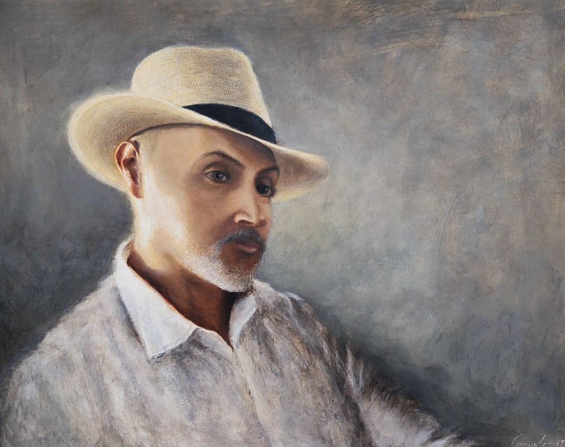 Le acompaña su pareja Verónica Conzuelo, excepcional pintora que trabaja el temple, una técnica al parecer sencilla, pero a su vez, compleja, y su hija Casandra.