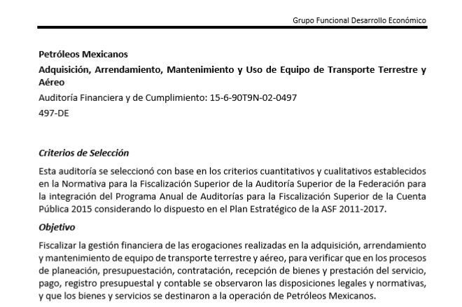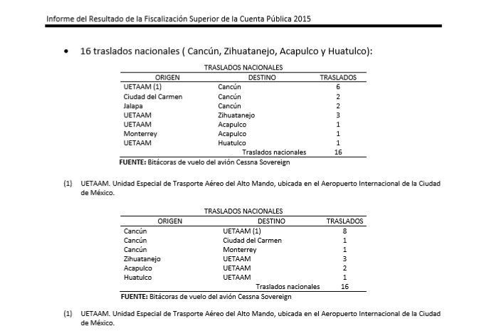 “No existe transparencia en el uso de estos equipos y no se pudo verificar si los vuelos se realizaron para los fines institucionales”, concluyó la ASF en la revisión de la Cuenta Pública de Pemex 2015.