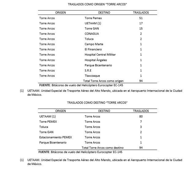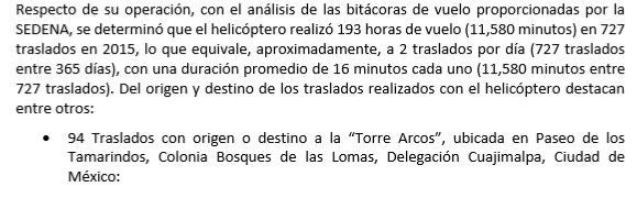 En total, fueron en 2015, 185 viajes en avión y 727 en helicóptero, por parte del exfuncionario federal. El costo promedio por cada vuelo en avión fue de 288 mil pesos y cada traslado en helicóptero en 13 mil 500 pesos, que representó para Pemex un gasto anual de 64 millones de pesos con un monto de 174 mil pesos diarios, calculó la ASF.