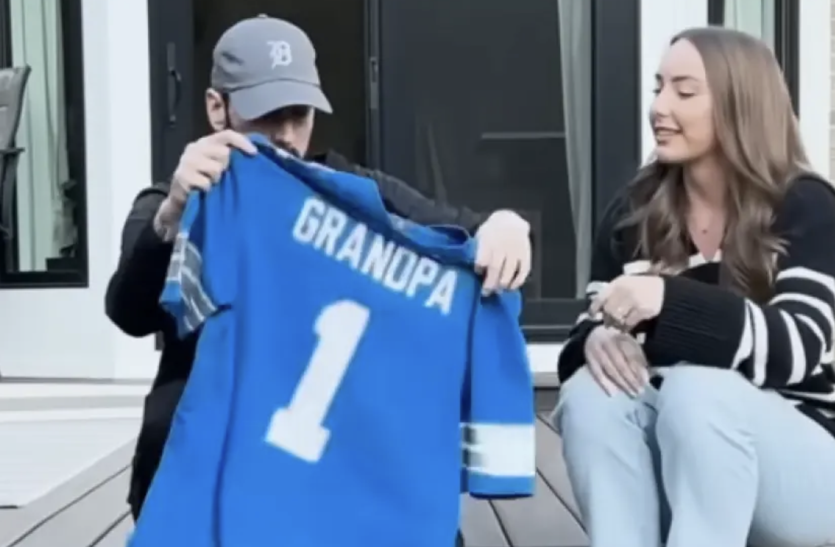 Según las imágenes, sorprendió a Moeller en su casa: le vendaron los ojos y lo llevaron a una habitación llena de globos dorados con la palabra “BABY M”. La revelación incluyó una prueba de embarazo positiva y unos pequeños tenis Nike.