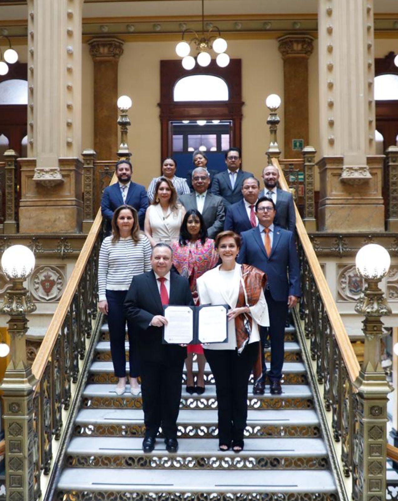 En la firma del convenio también estuvieron presentes integrantes de la Comisión del Bicentenario, las magistradas Cecilia Pérez Zepeda y Gabriela Nieto Castillo, el magistrado Greco Rosas Méndez, consejeros de la Judicatura, la secretaria técnica Liliana Gabriela Pérez Iturralde, así como personal del Poder Judicial del Estado de Querétaro.