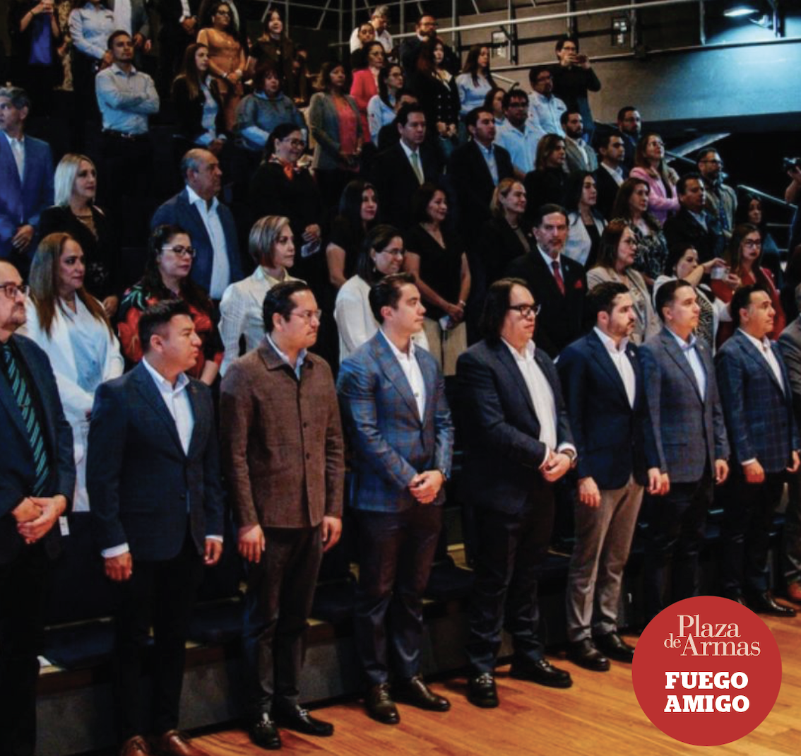 En la primera línea funcionarios y legisladores, incluidos los cuatro aspirantes del PAN a la gubernatura: Chepe Guerrero, Felifer Macías, Agustín Dorantes y Luis Bernardo Nava, además del fiscal del Estado y el secretario de Gobierno de Querétaro.