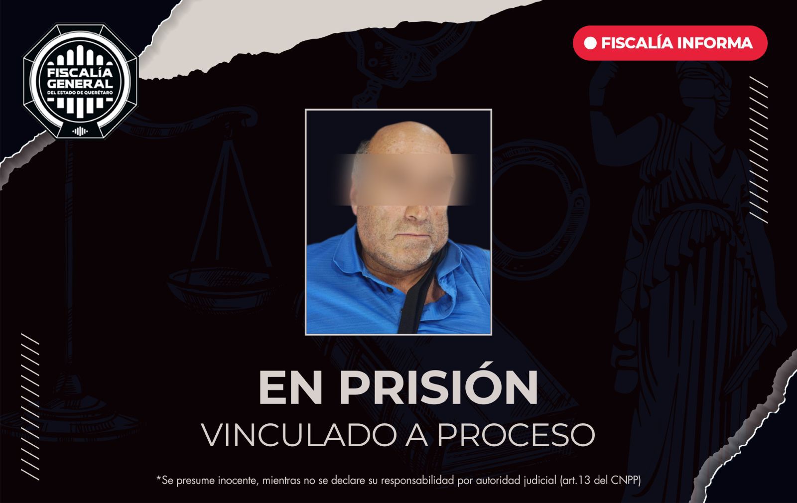 La Fiscalía General del Estado de Querétaro obtuvo en audiencia la modificación de medidas cautelares en contra de Plácido “N”, imputado por los delitos de homicidio culposo calificado agravado y lesiones culposas, derivado de hechos ocurridos en la Carretera Estatal 310, a la altura del hotel la Muralla, donde diez personas perdieron la vida y varias más resultaron lesionadas.
