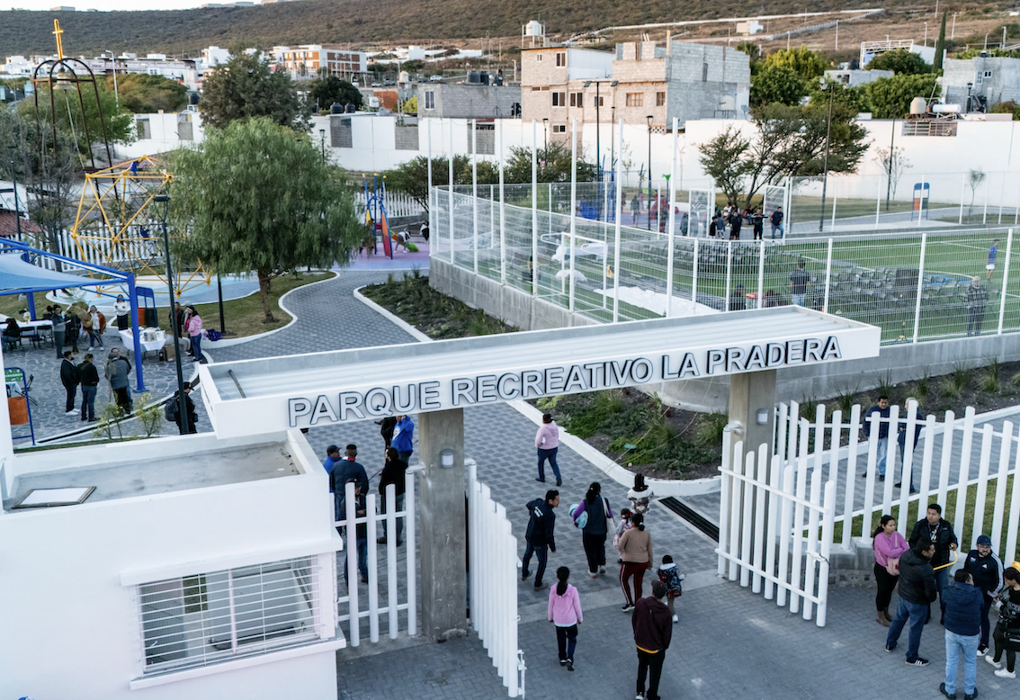 El presidente municipal de El Marqués, Rodrigo Monsalvo Castelán, realizó la entrega oficial del parque recreativo en el fraccionamiento La Pradera, un espacio que beneficiará a más de 19 mil marquesinos con infraestructura deportiva de primer nivel que contribuirá con la activación física y el bienestar de niñas, niños, jóvenes y adultos de la localidad.