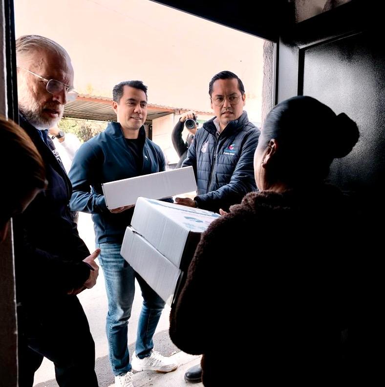 El presidente municipal de Querétaro, Felipe Fernando Macías Olvera, acompañó a su homólogo de Corregidora, Josué Guerrero Trápala, en la entrega de cenas navideñas a habitantes de la colonia Los Olvera, en el municipio de Corregidora.
